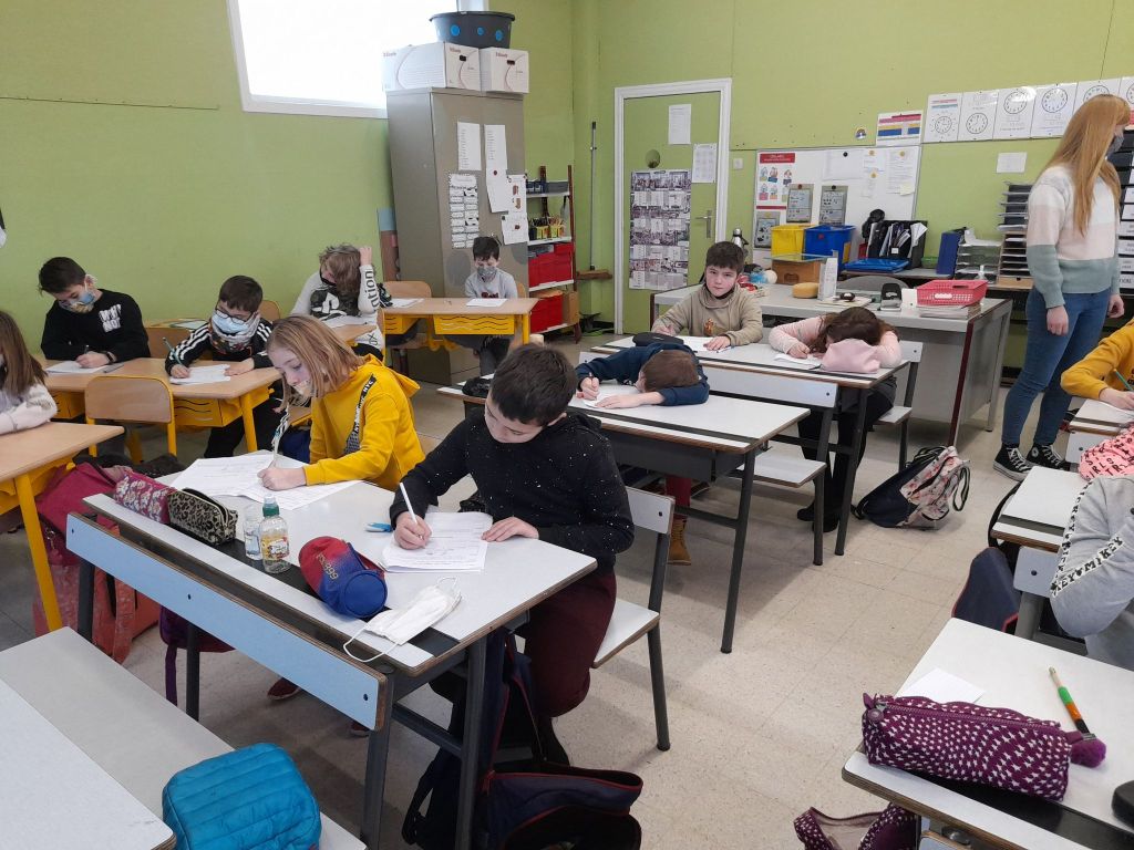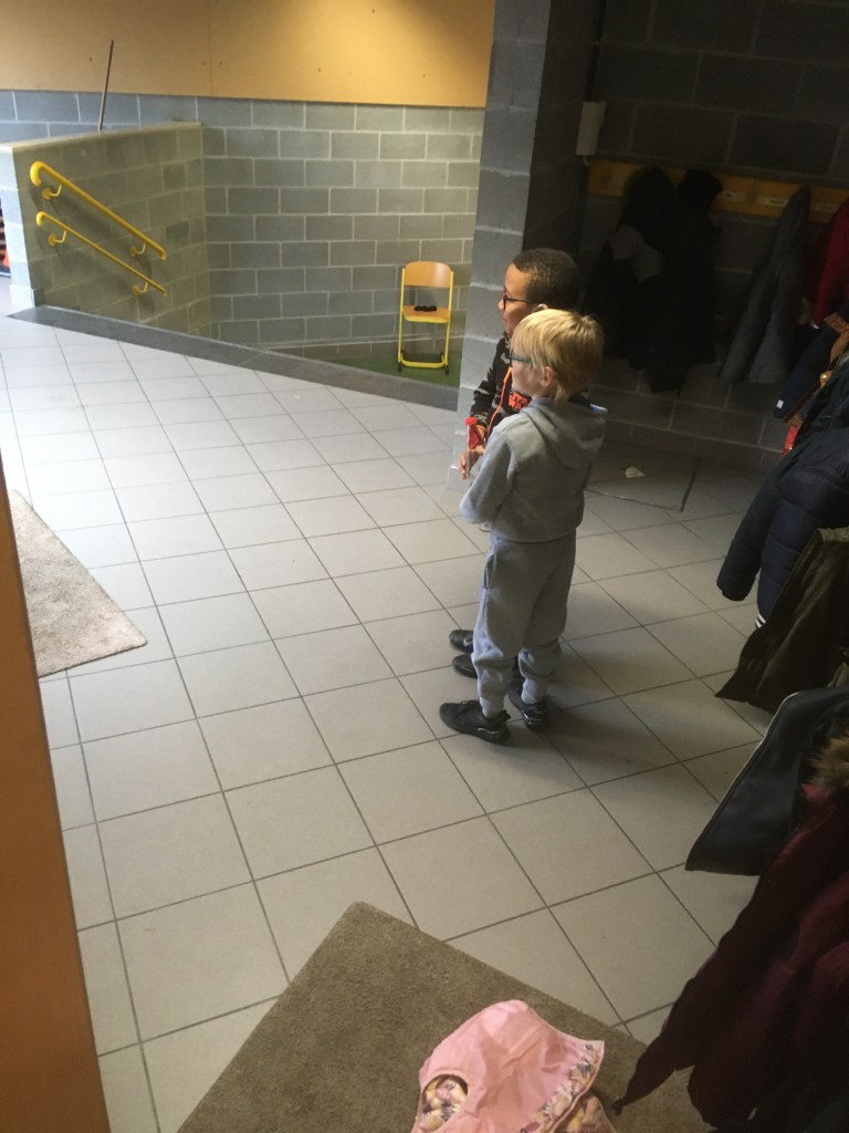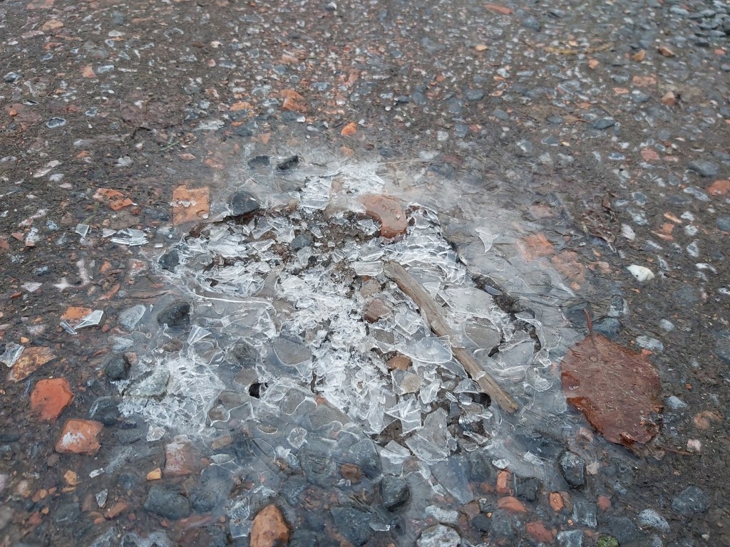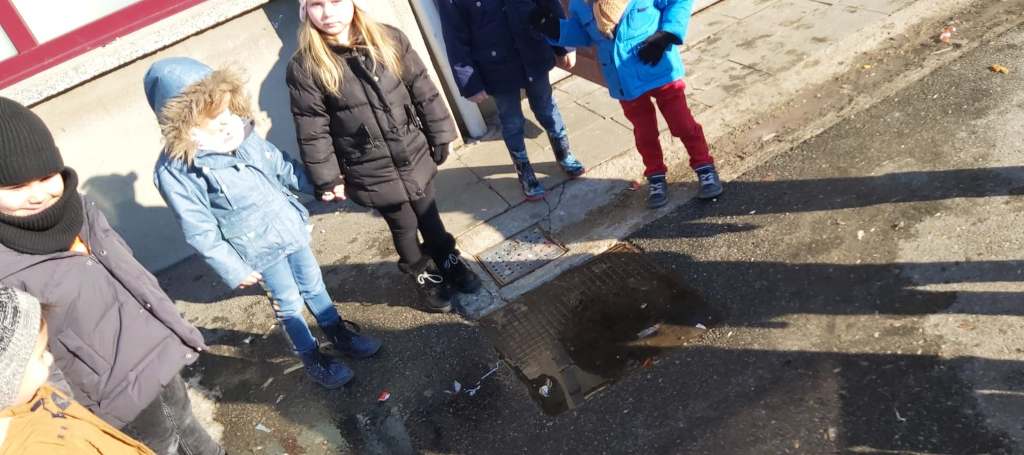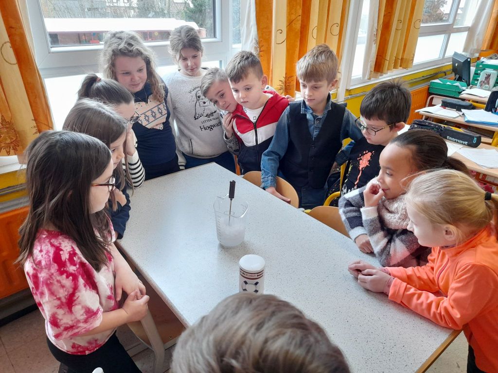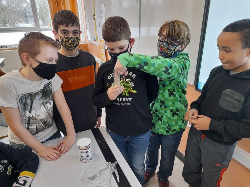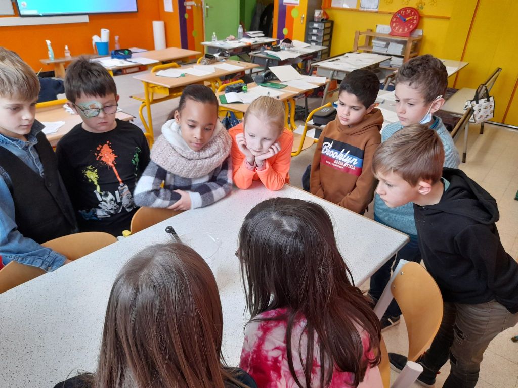 Suite à la première avancée hivernale de l’année, les enfants ont constaté que l’eau présente dans la flaque devant la classe avait disparu pour laisser place à de la glace, une glace présente partout dehors, dans la plaine, sur les voitures…