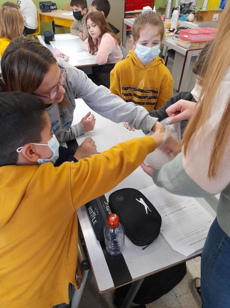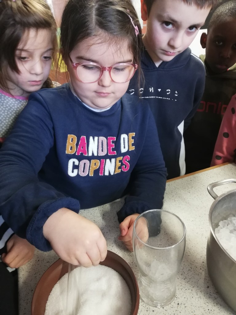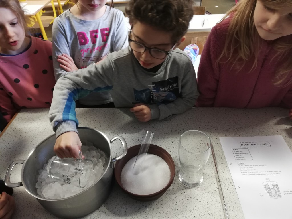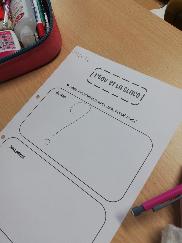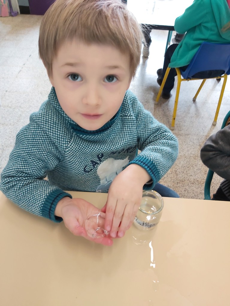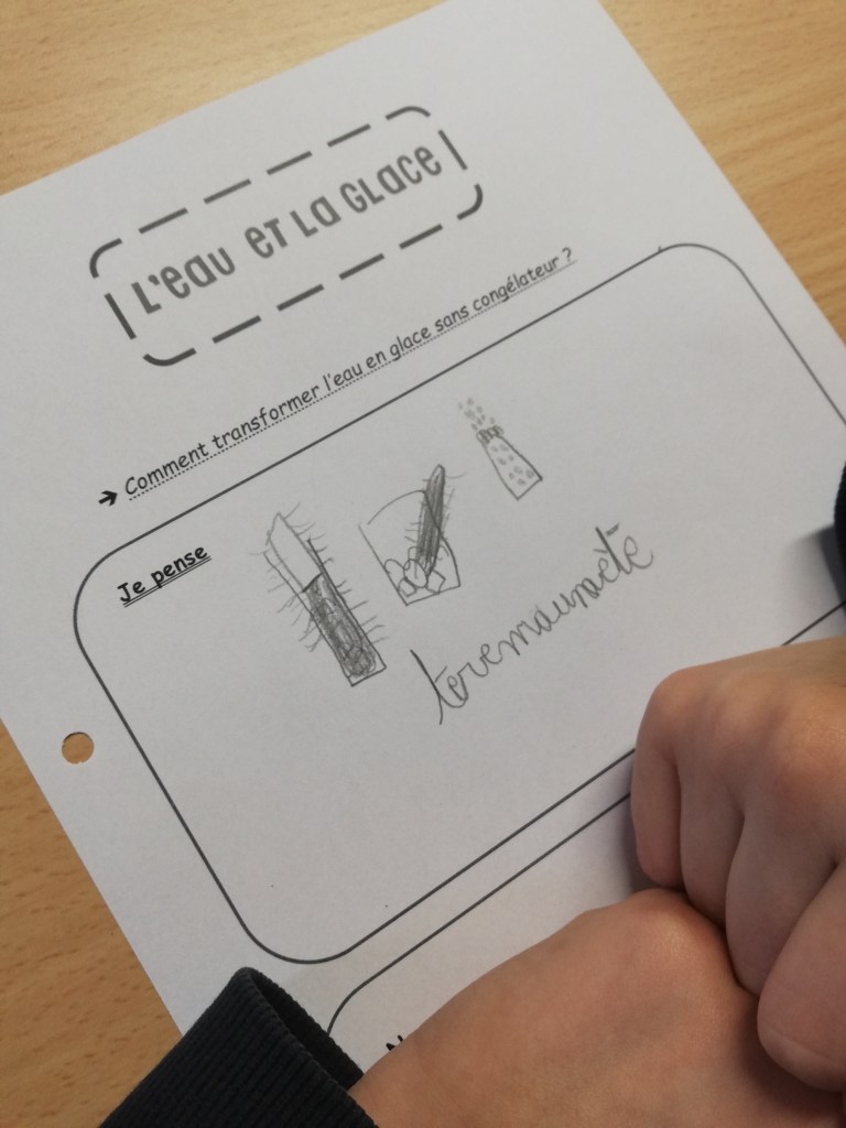 - Nous sommes allés chercher de la glace dehors pour pouvoir l’observer, la toucher, la décrire…