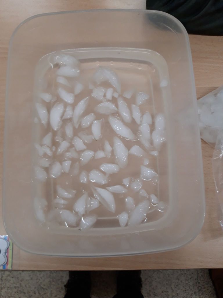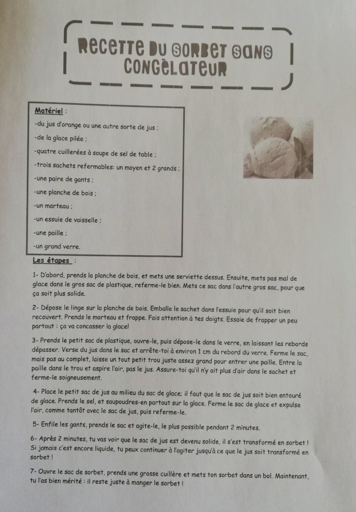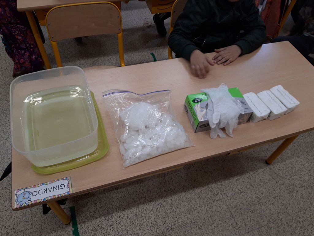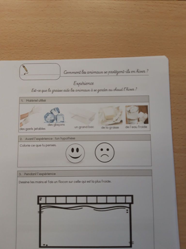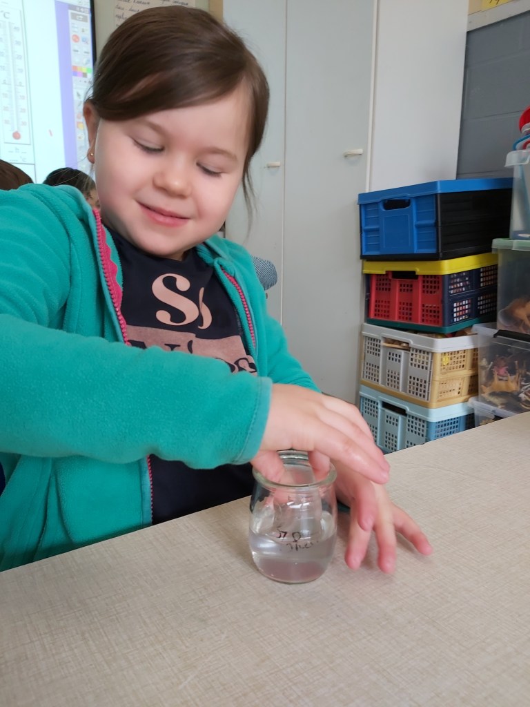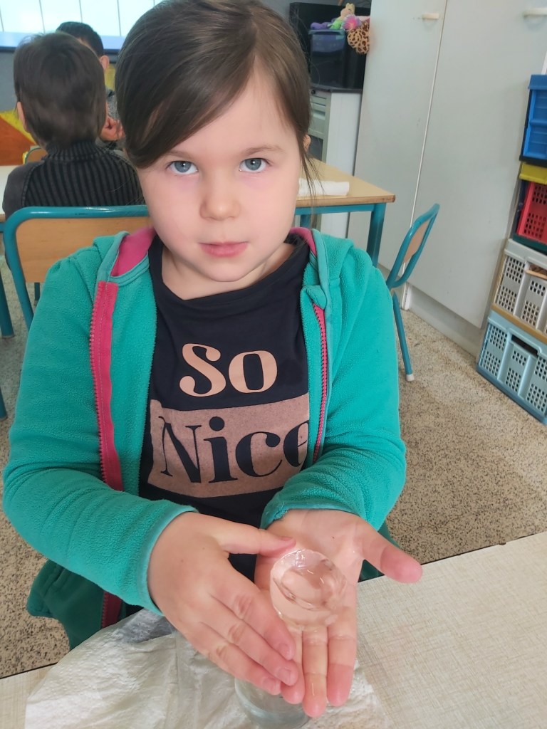 - Nous sommes allés chercher de la glace dehors pour pouvoir l’observer, la toucher, la décrire…