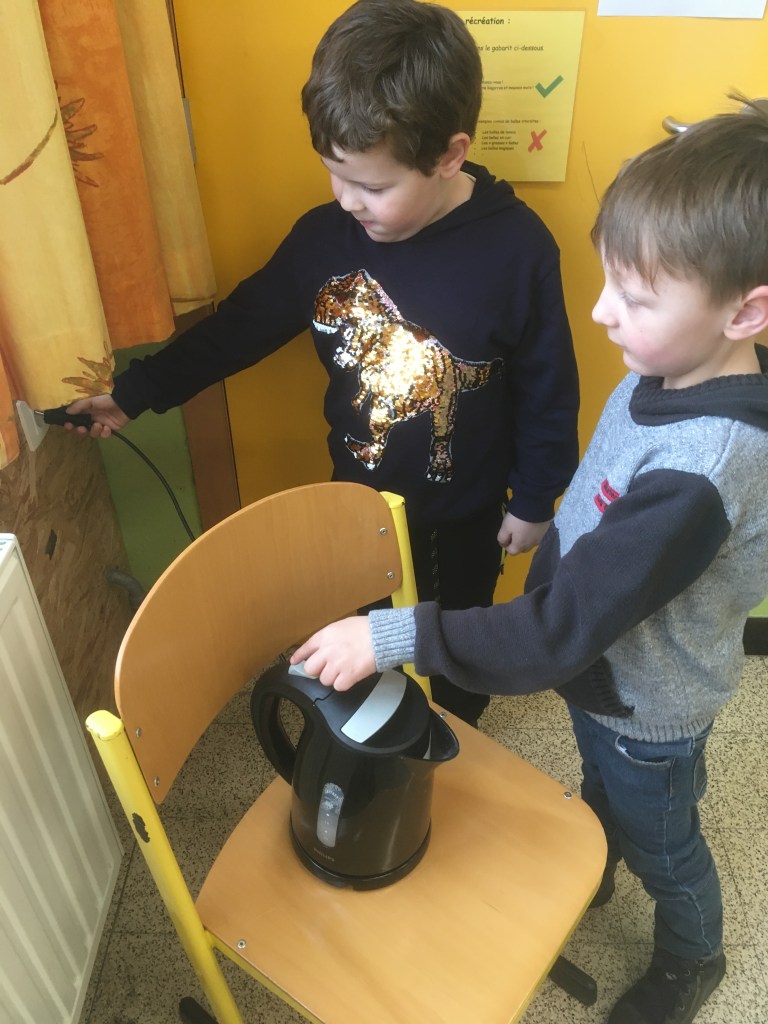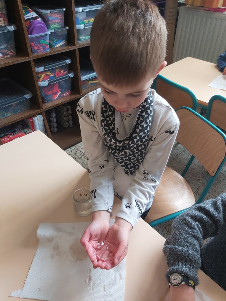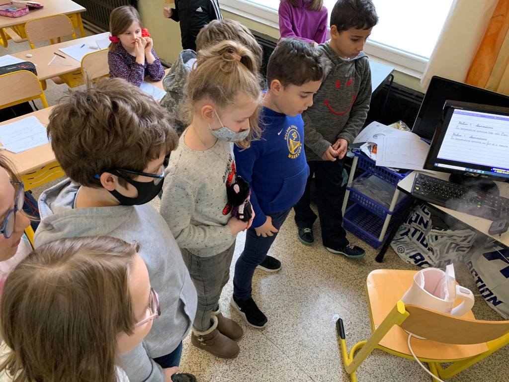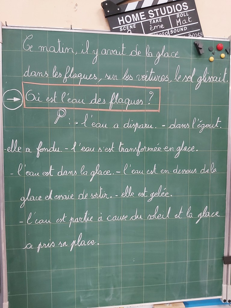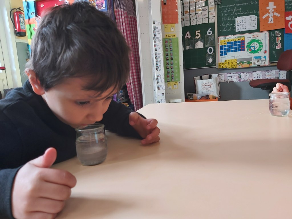 Jeudi matin, les élèves de Madame Nadège ont observé la neige qui fondait. Ils se sont demandés d’où venait et où allait cette neige !