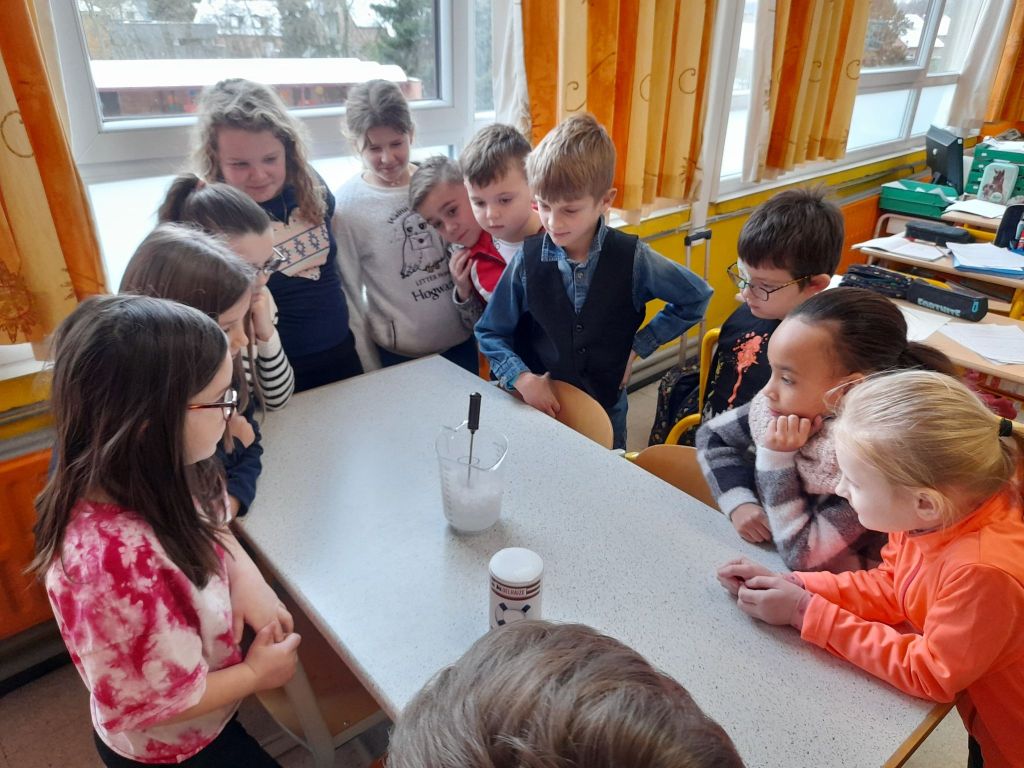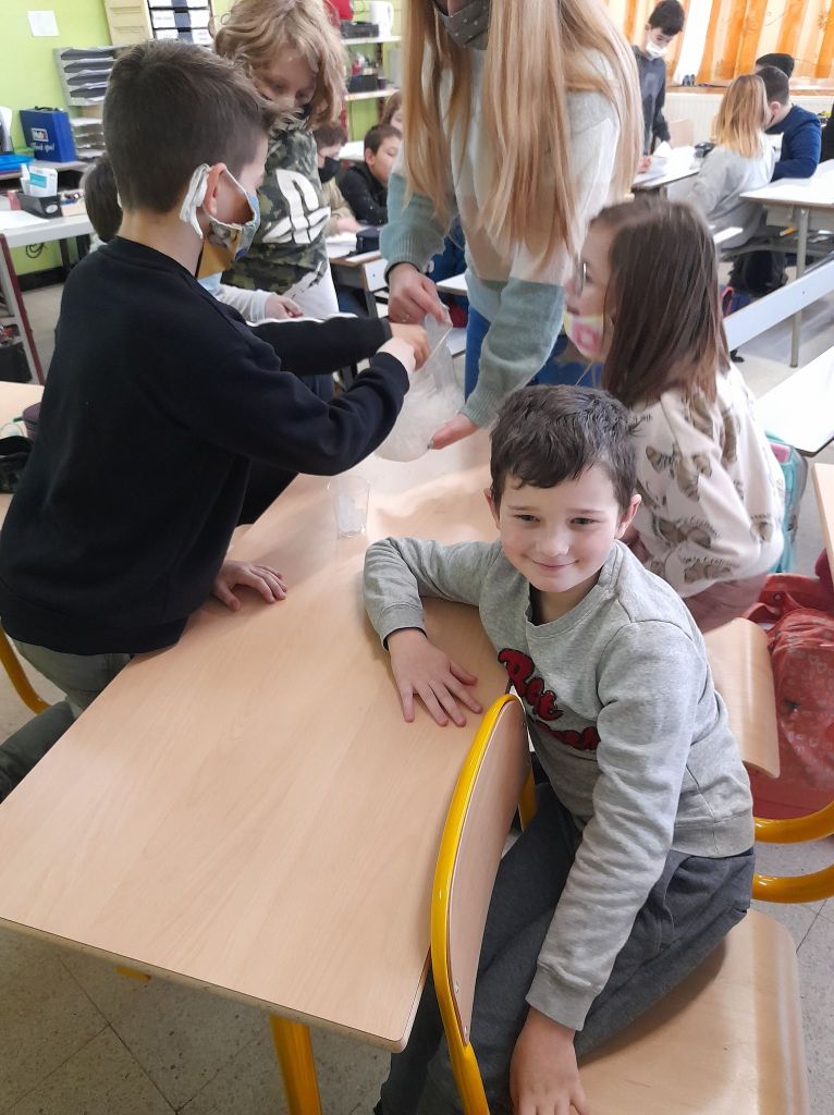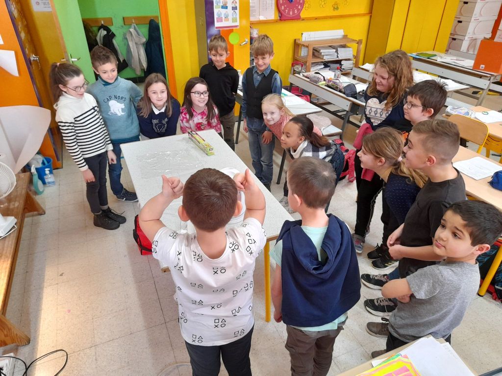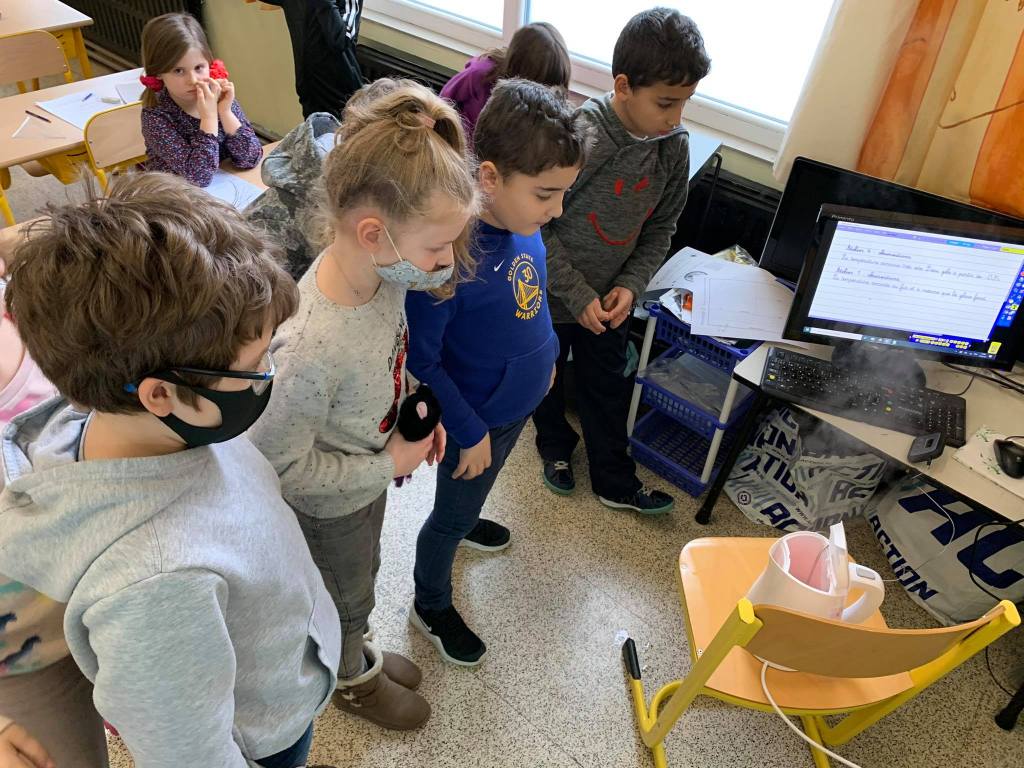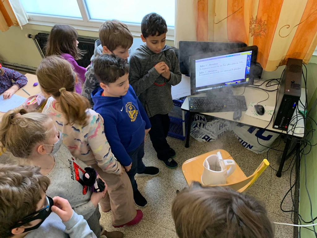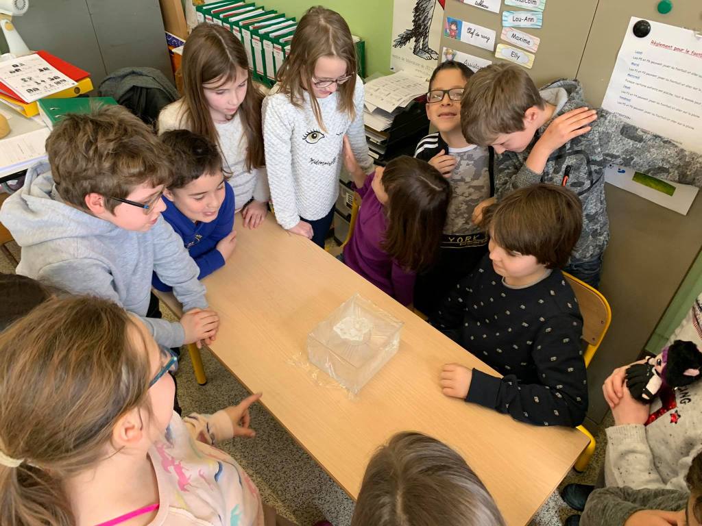 Jeudi matin, les élèves de Madame Nadège ont observé la neige qui fondait. Ils se sont demandés d’où venait et où allait cette neige !