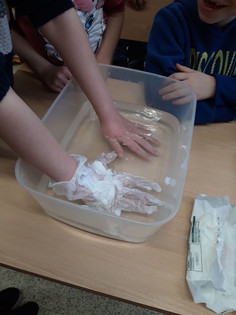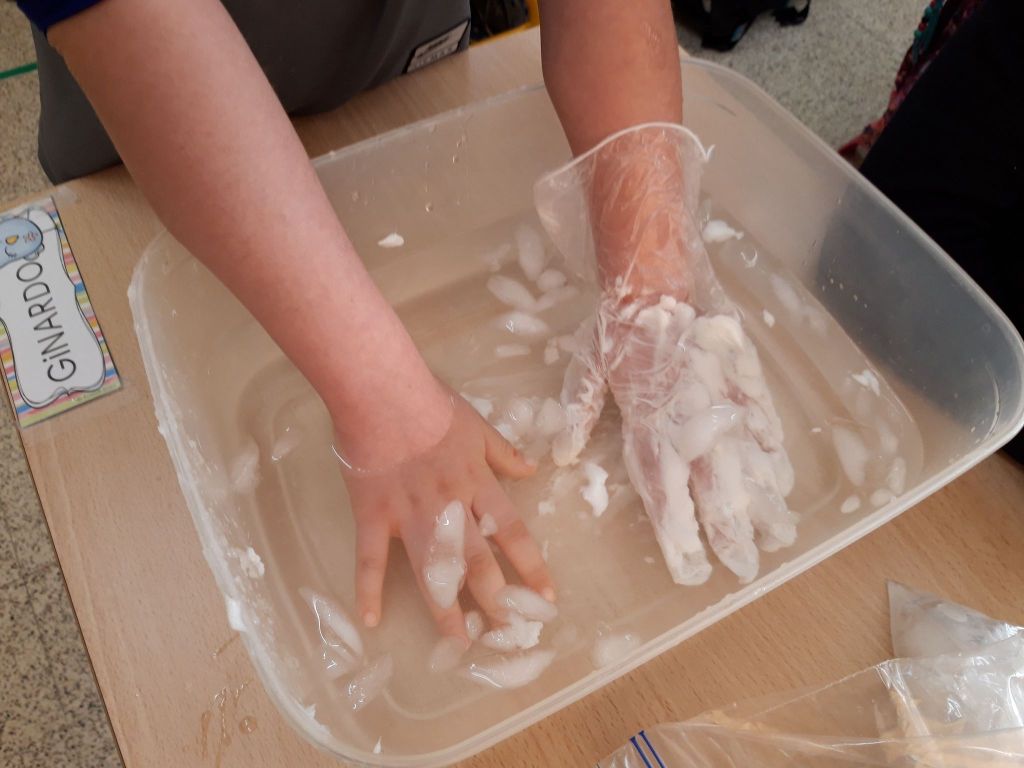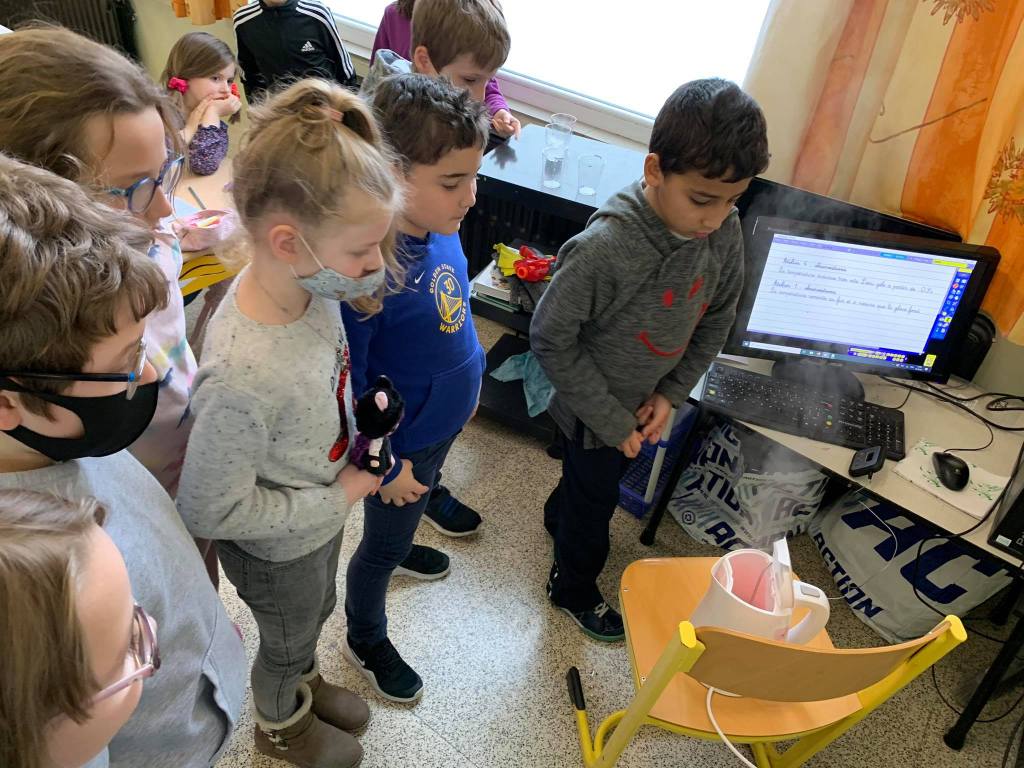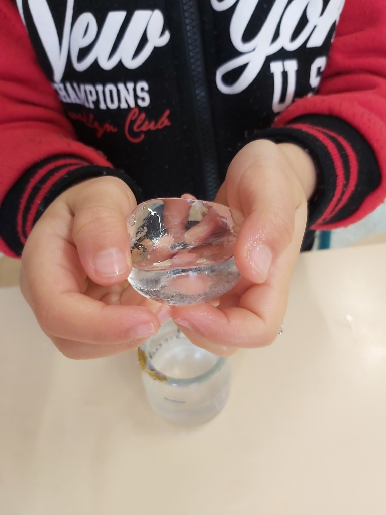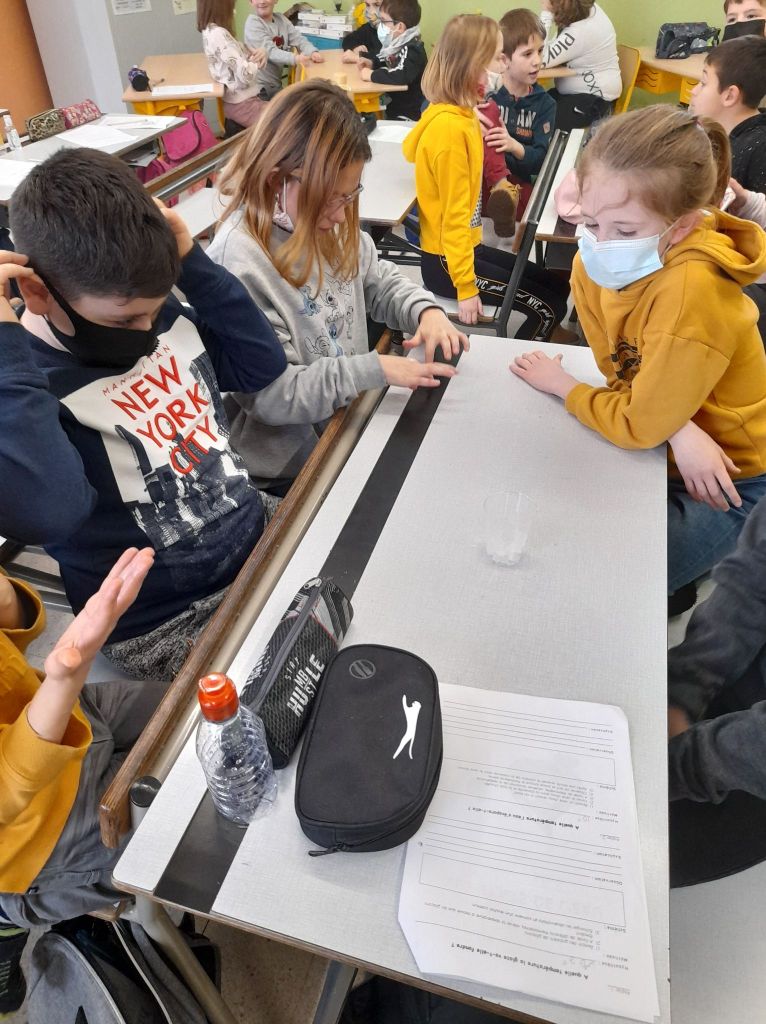 - Les enfants constatent que la glace fond pour se retransformer en eau.