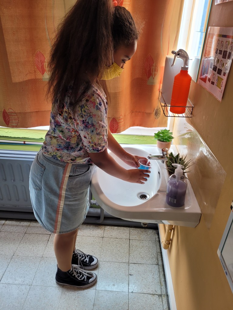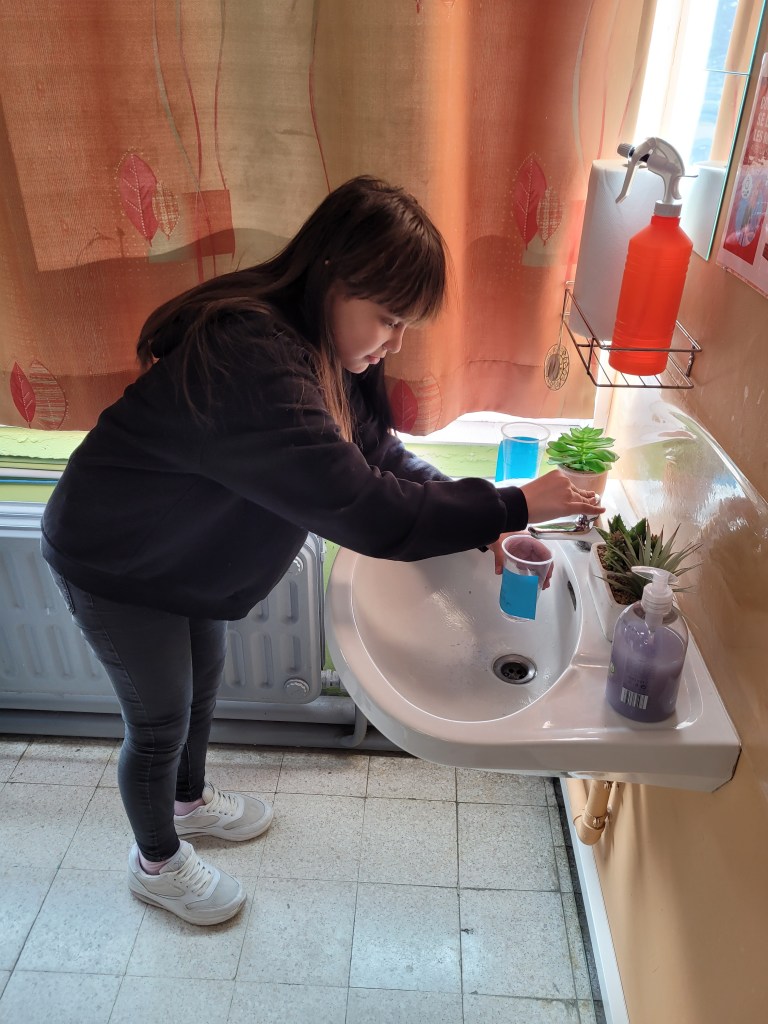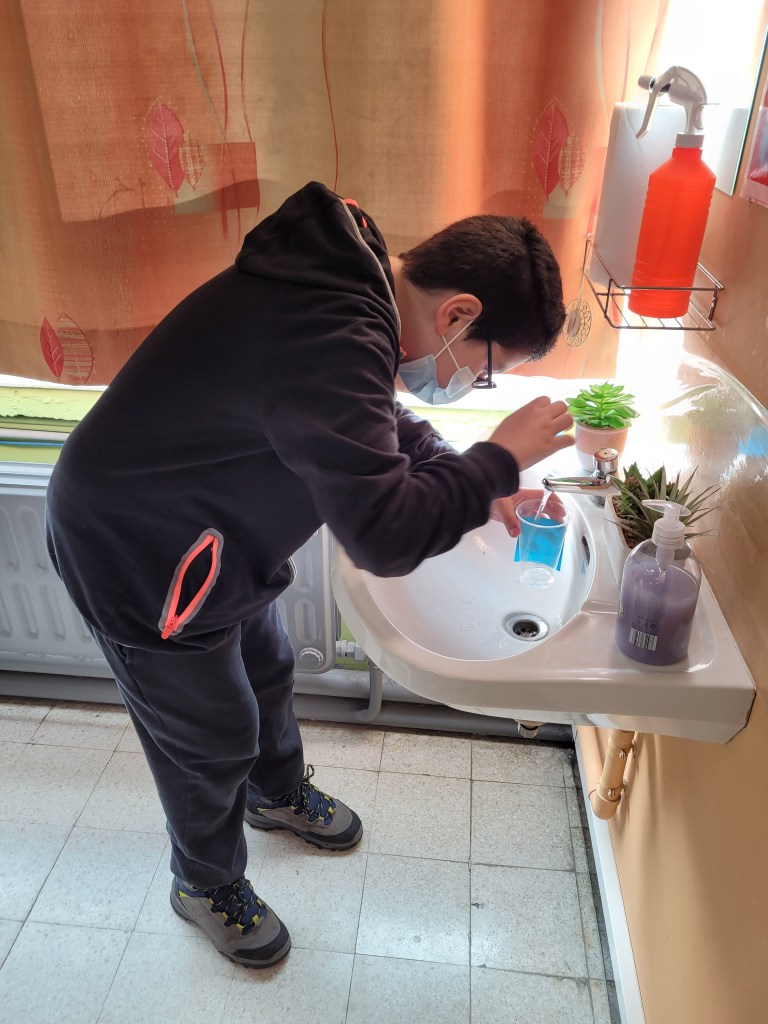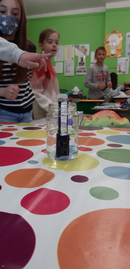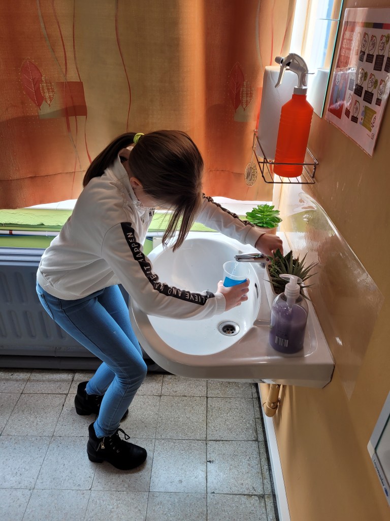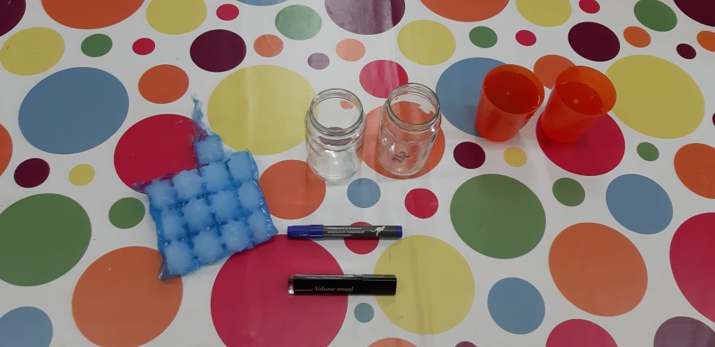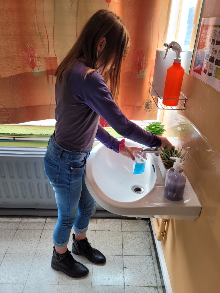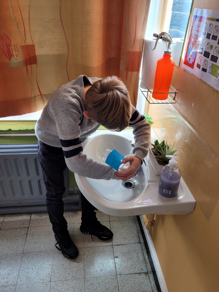 - Chaque enfant remplit un pot d’eau sur lequel on trace le niveau de l’eau.