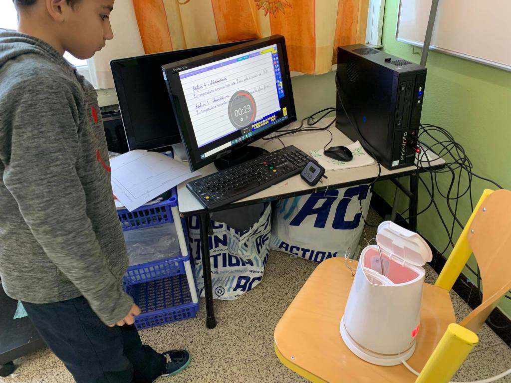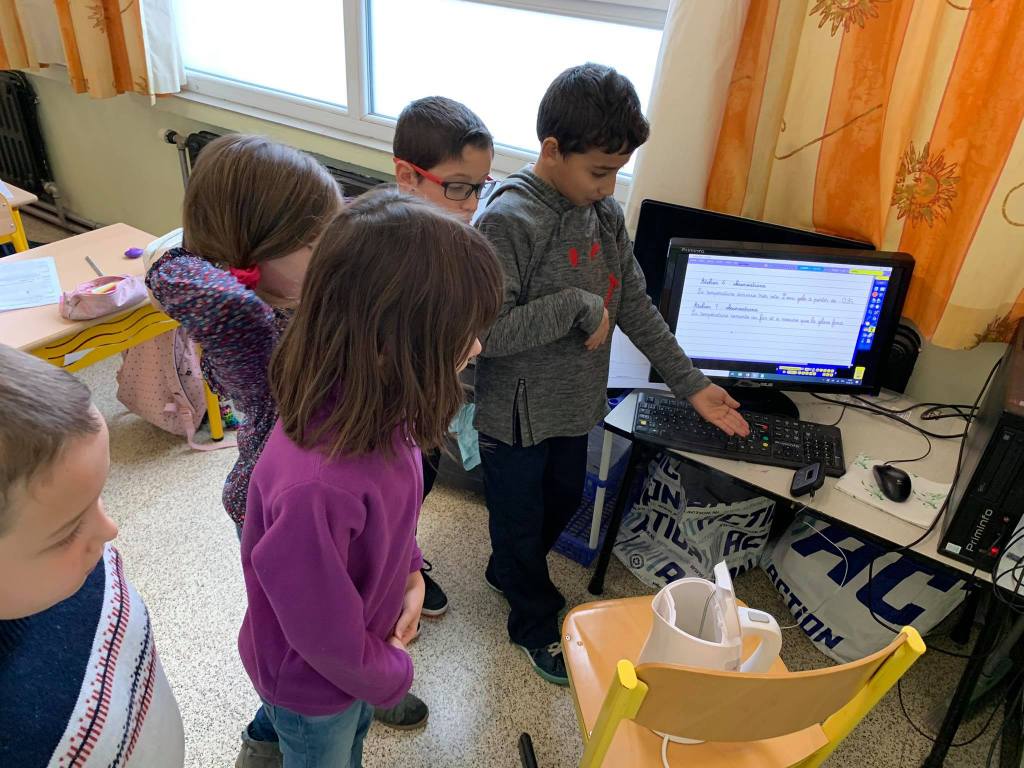 - Nous constatons pendant plusieurs jours qu’il n’y a plus de glace dehors. La température est à chaque fois au-dessus de 0°. Jusqu’au jour où la glace refait son apparition pour le plus grand bonheur des enfants. Là, ils constatent que la température est à nouveau sous la barre de 0°.