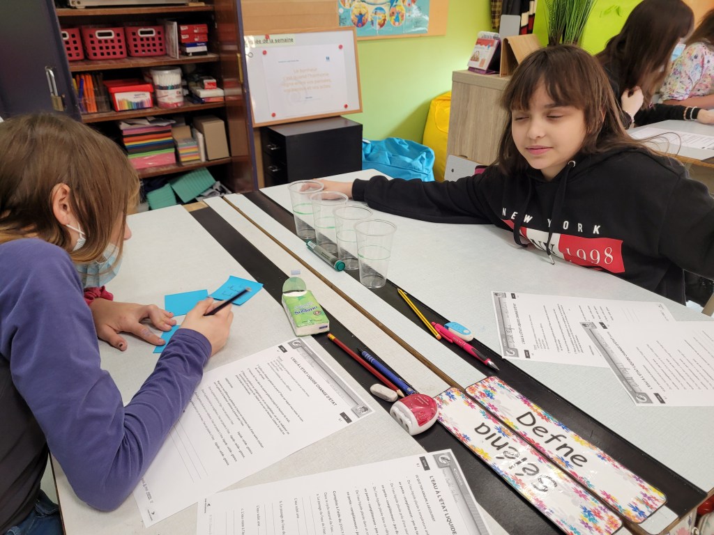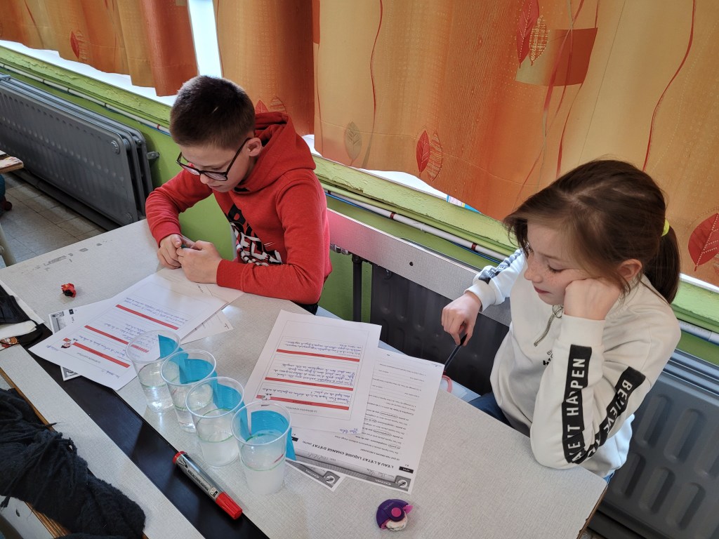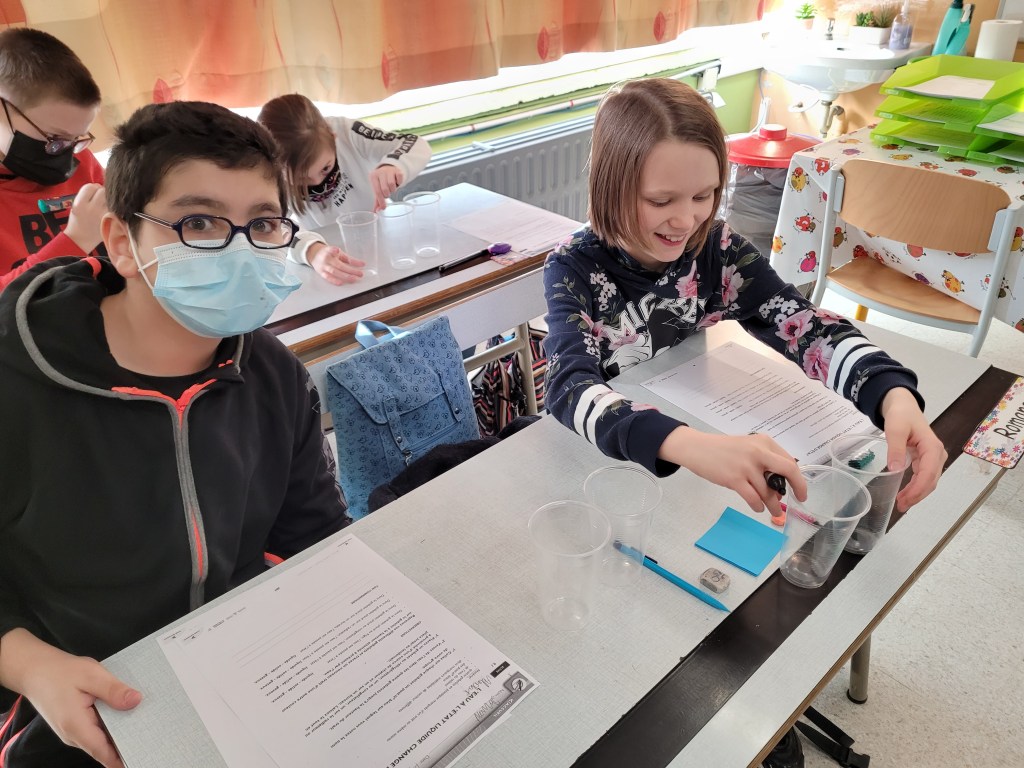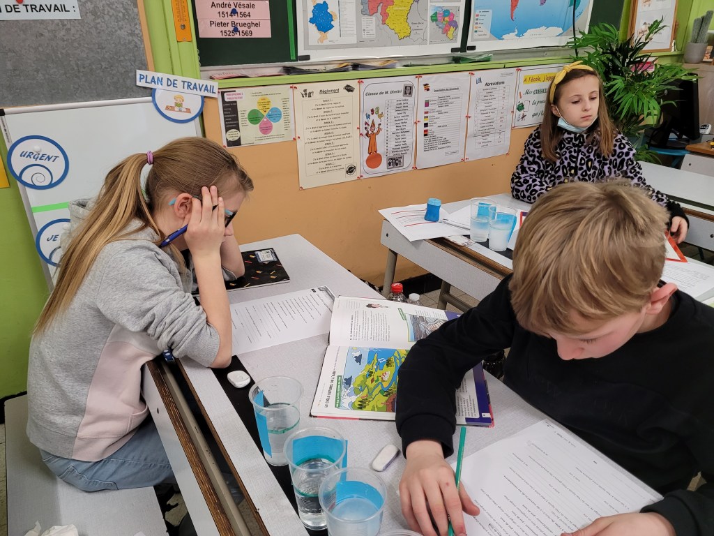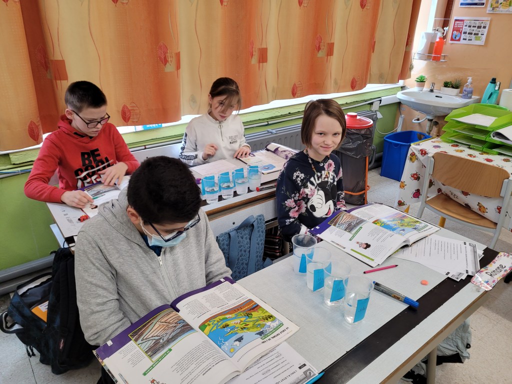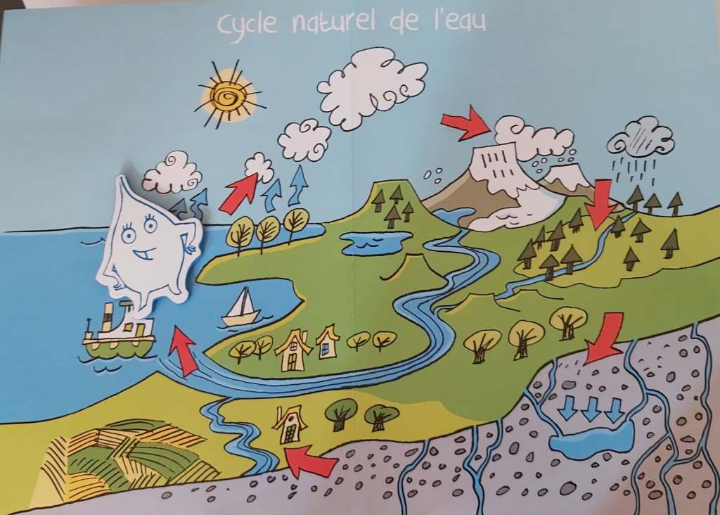 Après avoir posé leurs hypothèses, ils ont écouté une petite histoire racontant le chemin d’une goutte d’eau afin de vérifier leurs idées.