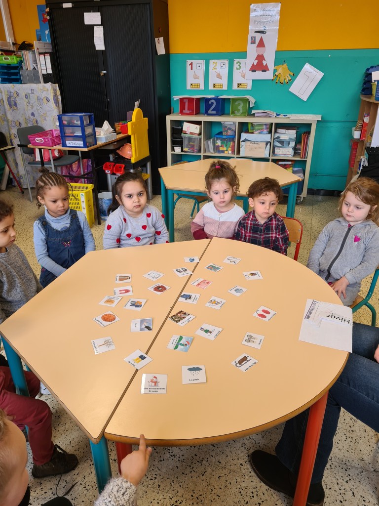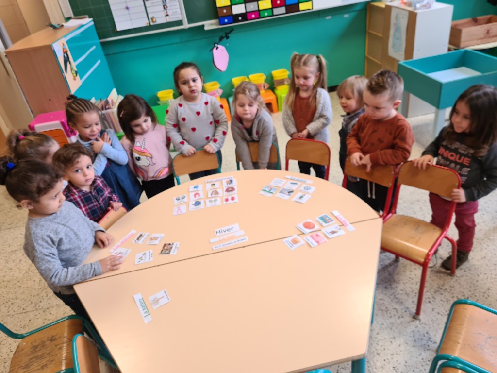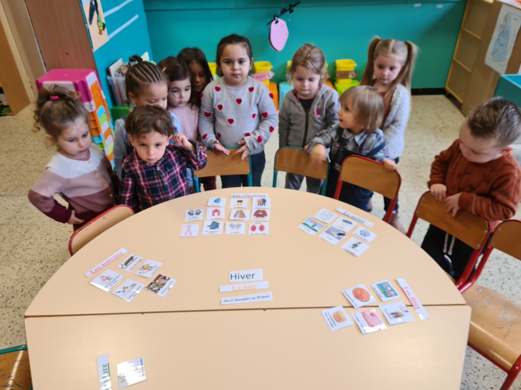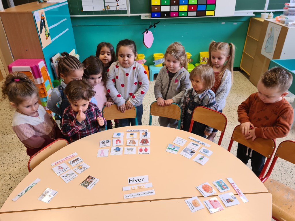 Nos plus petits élèves ont appris à caractériser l’hiver (observations, vocabulaire). Ensuite, ils ont élaboré une démarche afin de choisir les vêtements à utiliser pour se protéger du froid. En guise de synthèse, ils ont réalisé une belle carte mentale !
