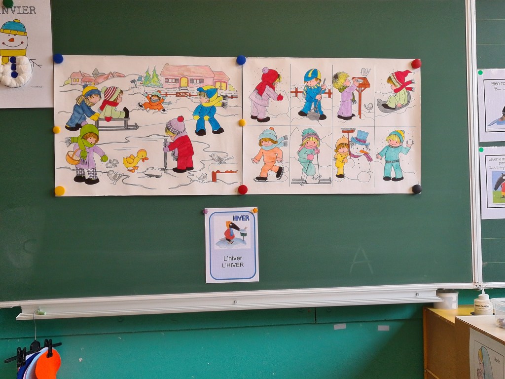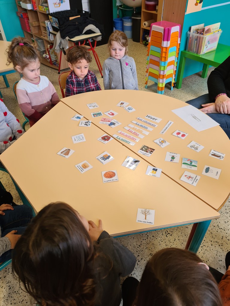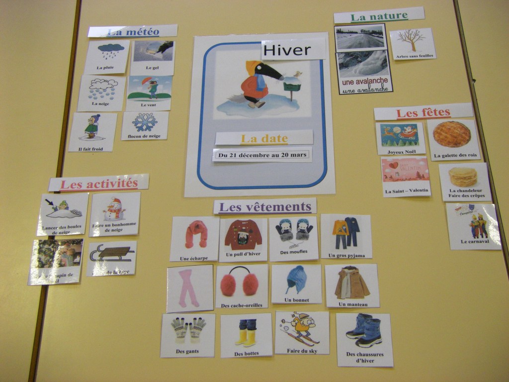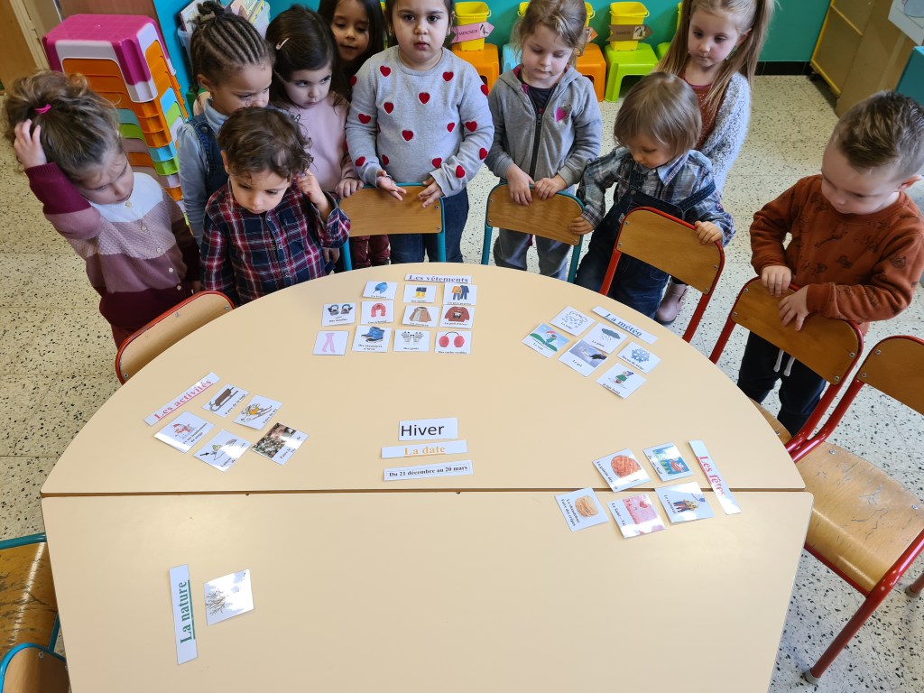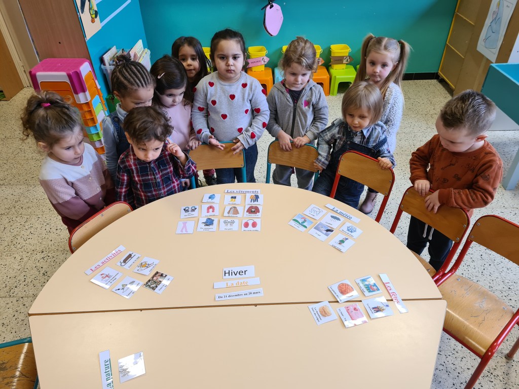 Nos plus petits élèves ont appris à caractériser l’hiver (observations, vocabulaire). Ensuite, ils ont élaboré une démarche afin de choisir les vêtements à utiliser pour se protéger du froid. En guise de synthèse, ils ont réalisé une belle carte mentale !