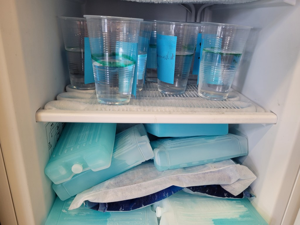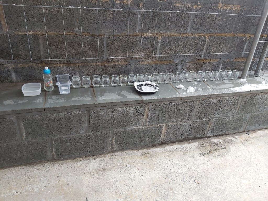 - Le lendemain, les pots sont totalement gelés et la glace dépasse le niveau dessiné.