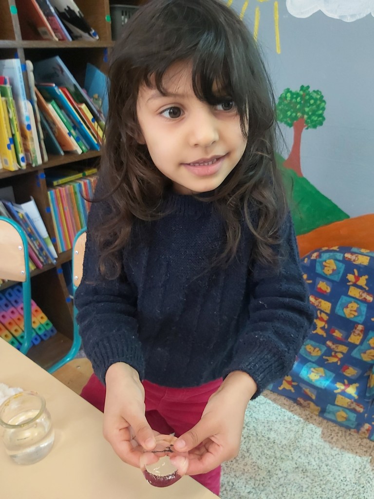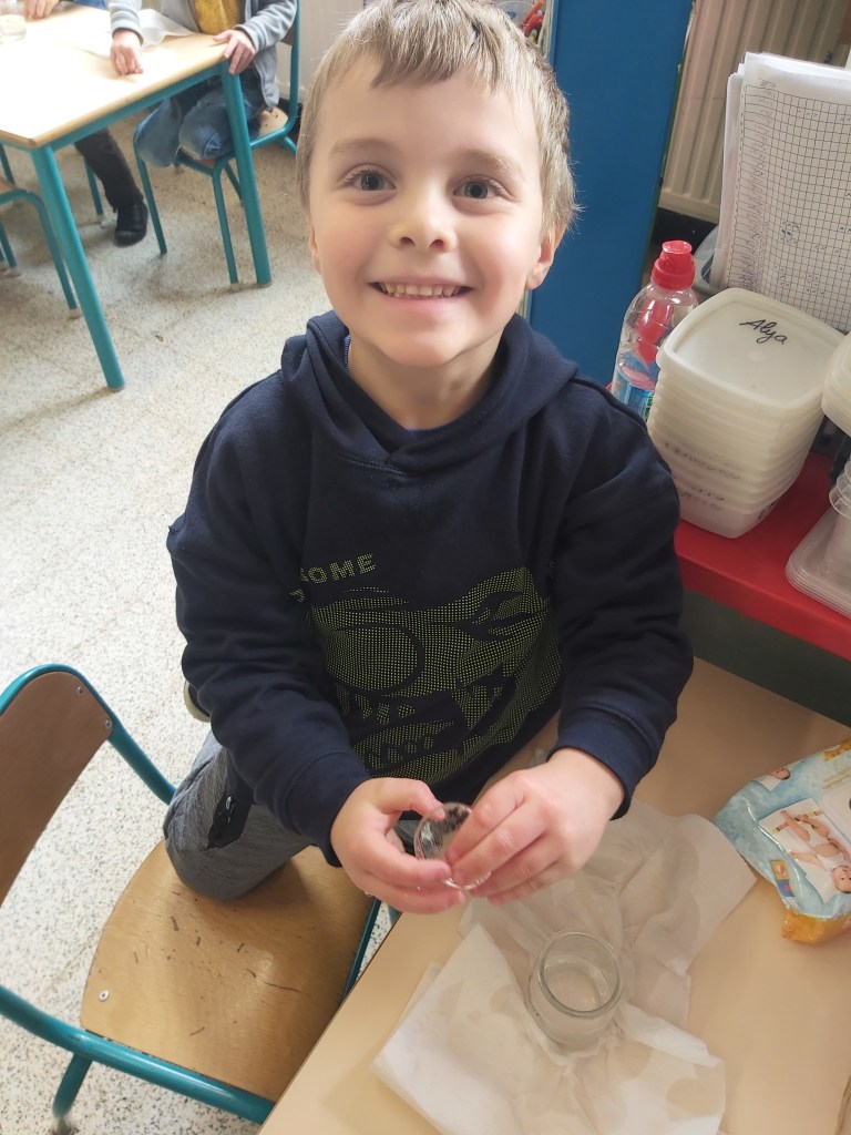 - A nouveau, nous rentrons les pots en classe pour les observer et les manipuler.